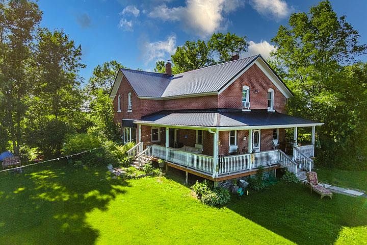 A little slice of true paradise, close to town. Located in Edgar on five private acres and just fifteen min west of Wausau. Built 1905, this two-story farmhouse has a wrap around porch, all brick exterior to stay cool in summer and a metal roof. This lovely home is well cared and maintained. Main house faces away from road, with four bedrooms which one is a walk thru, two oversized and one half bath. Roomy and updated kitchen, appliances included with two doors out to the porch. Main floor laundry with washer and dryer included. Master bedroom has attached office and large dressing room. Basement area features 2'- 0" thick stone basement walls, new slab, steel ships ladder stairs, new radon mitigation system and sump pump. Oversized gas furnace only five years, newer gas water heater and the water filter. Family room with heat and plenty of storage.Large barn features newer metal roof - four bays, two oversized steel sliding doors, ready for slab, huge open upper-level, established chicken coop and aviary for pheasants or other. Newer mount system and well with twelve gallons per minute. Second source of water at the garage and hydrant in big barn. Heated garage slabs with newer metal roof two zones, man cave room, loft area with great potential already framed for windows. Beautiful 5 acres large lawn, open grass with planting area surrounded by trees very private, old apple trees, plum trees, maple, pines and elm, huge lilacs, forsythia, peonies. Tree area with fire pit, treehouse, zip line and shade. Fenced garden with three raised beds, pumpkin patch. Newer mount system maintained and pumped on schedule. Two-and-a-half-acre field with pine tree line ready for crop. Fifty- and hundred-yard shooting mounds, tree stand. This lovely property is true paradise with beautiful views of Rib Mountain and farm fields.