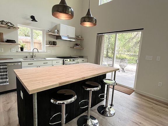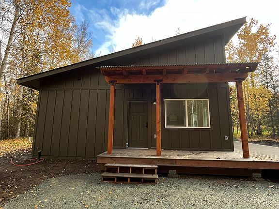 ** FULLY FURNISHED ** Vaulted ceilings throughout make this 1,000sf *NEW* construction home feel extra spacious with tons of natural light. Two bedroom, one bath on a private lot in a quiet neighborhood, currently furnished as a bedroom and office. Additional bed available on request. Listen to the backyard creek just down the bluff from your fire pit area. Enjoy mountain views from your bedroom and kitchen. All appliances and home systems are brand new and energy efficient. Immense windows in every room with views of mature trees. Quartz countertops in kitchen and bath with high end fixtures and new furnishings throughout the home. Huge front deck to enjoy the afternoon sun and sunset. Easy access to the highway, only 25 minutes to Anchorage or Wasilla. Convenient to stores, schools, parks, and hiking/biking trails. $2400/mo + utilities $2400 Security Deposit Available June 15th 6-12 month lease options Sorry, no pets No smoking Furnished currently as one bedroom and one office. Additional queen bed provided upon request. 6 or 12 month lease option. Tenant responsible for utilities: gas, electric, trash, internet. Excellent well water!