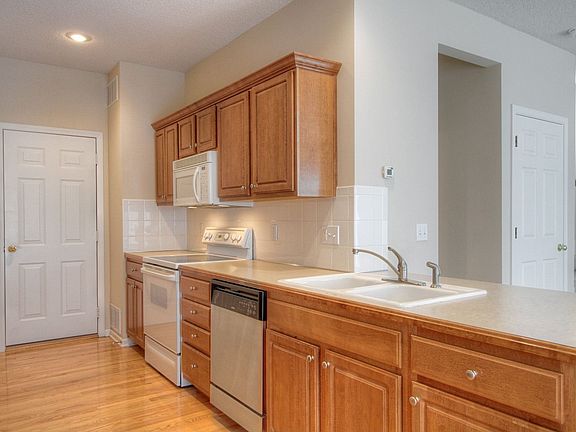 Ready to move in. IMMEDIATE POSSESSION! This maintenace provided townhome shows better than new. One of the few units that backs up to walking trail & green space. Open floor plan w/large grt rm featuring tiled fireplace & breakfast rm. that walks out to deck. Home features all of today's neutral colors, hardwood floors in kitch. & dining.