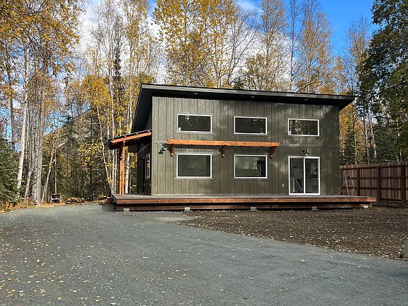 Vaulted ceilings throughout make this 1,000sf *BRAND NEW* construction home feel extra spacious with tons of natural light. Two bedroom, one bath on a private lot in a quiet neighborhood. Listen to the backyard creek just down the bluff from your fire pit area. Enjoy mountain views from your bedroom and kitchen. All appliances and home systems are brand new and energy efficient. Immense windows in every room with views of mature trees. Quartz countertops in kitchen and bath with high end fixtures. Huge front deck to enjoy the afternoon sun and sunset. Easy access to the highway, only 25 minutes to Anchorage or Wasilla. Convenient to stores, schools, parks, and hiking/biking trails. $2150/mo + utilities. $2150 Security Deposit. Available November 1st. 6 month lease. Sorry, no pets. No smoking. 6 month initial lease with potential extension. Tenant responsible for utilities: gas, electric, trash, internet. Excellent well water!