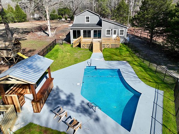 Unlock the door to your dreams with a remarkable offer: Indulge in the allure of this breathtaking lakefront property, a true gem that promises a remarkable living experience. With its spacious living areas and captivating views of the lake, this home is a haven of tranquility and beauty.A Sprawling Outdoor Oasis: Situated on a .91acre deeded lot, this property provides an abundance of space for outdoor activities and cherished moments. The inviting in-ground pool invites you to escape the summer heat and create lasting memories with loved ones. Unwind in the sunroom, adorned with three sets of sliding doors, as you immerse yourself in the mesmerizing vistas.Elegance and Energy Efficiency: Recently updated, this home exudes modern elegance and boasts energy-efficient features. From the new roof and flooring to the upgraded HVAC, wiring, insulation, and tankless water heater, every detail has been thoughtfully designed to ensure comfort and sustainability. Unveiling Natural Beauty: Step inside to be greeted by an interior that seamlessly blends with the surrounding natural beauty. The open floor plan allows for an abundance of natural light, creating a warm and inviting ambiance. The living area beckons with its spaciousness, ideal for entertaining guests or unwinding in comfort. A Culinary Haven: The kitchen is a haven for culinary enthusiasts, with its well-equipped kitchen island, granite countertops, ample cabinet space, and a cozy eat-in area. Preparing and sharing delightful meals with family and friends is a delightful experience in this gourmet kitchen. Personal Retreats for All: Each of the three master bedrooms boasts its own en-suite, ensuring privacy and comfort for every resident. Whether you're hosting guests or seeking solace, these personal retreats offer the perfect sanctuary. Versatility for Your Desires: Ideal for families seeking a primary residence, a vacation home, or an Airbnb investment, this property adapts to your every desire. Its versatility allows for cherished family moments and lucrative rental opportunities. An Outdoor Wonderland: The outdoor area beckons, promising unforgettable moments with guests and cherished views of the lake. With access to a shared dock, enjoy swimming, fishing, and boating adventures, right at your doorstep. Lakefront Luxury and Convenience: In conclusion, this lakefront property embodies the perfect blend of luxury and convenience. Your dreams of lakefront living can become a reality. Seize the Opportunity: Don't miss out on this one-of-a-kind home. Embrace lakefront living at its finest. Contact a real estate professional today to make this stunning lakefront retreat your very own!