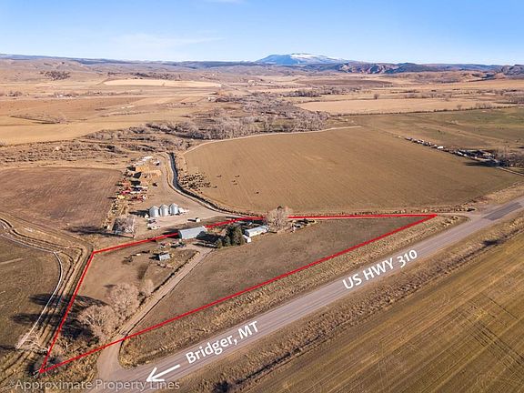 Cute home and acreage just south of Bridger with the most amazing views from the front porch! Lots of potential with this property! Property has excellent access, home, shop, and 3.86 acres with IRRIGATION. The home boasts a spacious living, dining and kitchen area with simply amazing views of the BEARTOOTH MOUNTAINS out the picture window. 3 bedrooms, 1 bathroom, large walk-in pantry, built-ins for storage, and ample closet space round out the adorable home! 30X50 SHOP/BARN combo for your animals or toys! Wonderful, mature trees frame the yard and provide privacy. Great opportunity at an affordable price, don't miss out!! Home is NOT a mobile.