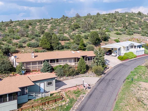 Prescott's Premier 55+ Community with Amazing Views Under 190K!!Plush Carpet Through Out, Tile in Kitchen and Bathrooms, Walkin Shower in Master, Wood Burning Fireplace in Living Room, Custom Wood Blinds in Living Room, Wood Blinds in Dining & Master Bedroom. Gas Heat & Central A/C. Vinyl Siding Exterior, w/Wrap Around Deck & Huge Outside Storage.Architectural Shingle Roof. RV PRKG Contact HOA. Club House Includes Tennis, Indoor Swimming Pool, Jacuzzi, Billiards, Fitness, Library & Community Kitchen. (2) Pets 15 inch ground to shoulder.Aprox 4 Miles to the Down Town Square, Minutes away to TJ's, Costco, Prescott's Gateway Mall, Red Lobster, Olive Garden, Shopping, Amenities & Much More!