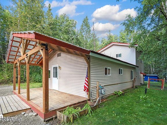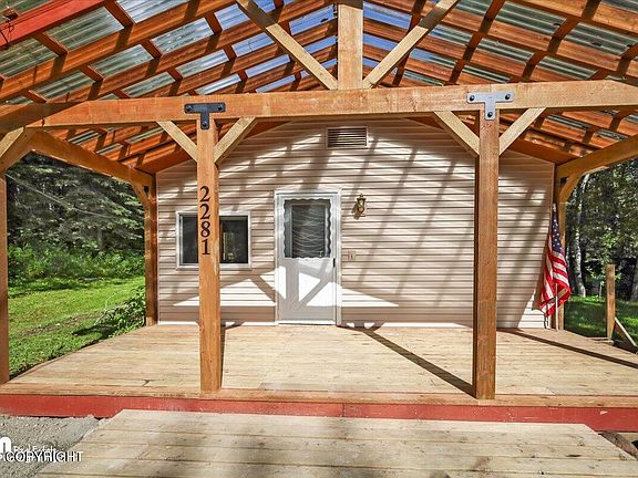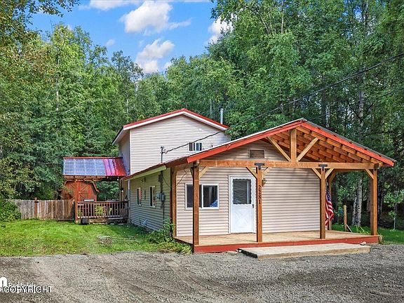 The standout feature of this affordable Alaskan home is its location. Surrounded by towering trees and the stunning natural landscape, the property offers a unique opportunity to connect with nature. The long private driveway not only ensures privacy but also enhances the feeling of being tucked away in your own personal oasis. Fenced yard, detached shop/ garage, plenty of parking.