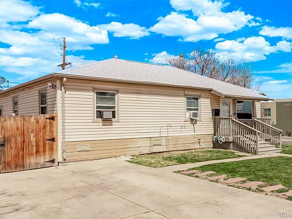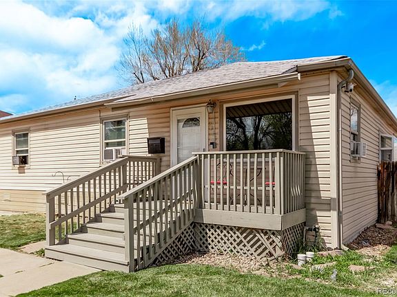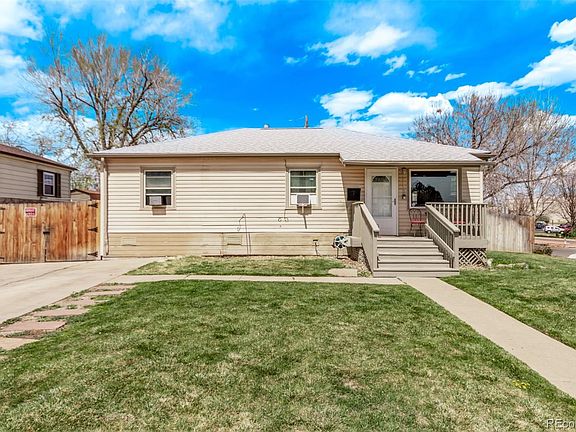 Traditional Ranch home with vintage touches offers lots of space and 6 bedrooms all on the main level. Come see this charming corner lot property with a great location in Thornton! This south-facing home with 6 bedrooms has a nice inviting yard, front porch sitting area, easy care vinyl siding and private fenced yard, No HOA!!! behind gate parking pad with room for an RV, boat, trailers or snow mobiles. The interior boasts clean lines & a functional floor plan. Upgraded electric panel all ready to install central air. Currently cooled with window coolers. The kitchen has vintage wood cabinets and all appliances included. Lots of room to update the kitchen with additional modern cabinetry. This home offers 6 bedrooms, use all as sleeping areas, or an office, nursery or workout room. The oversized bonus room at the rear of the home is currently being used as the primary bedroom and also has private exterior access door. Could also be a 2nd living room or a lock off rentable space. Laundry room inside for added convenience, with washer and dryer included, that could also be remodeled to add a second bathroom laundry combo. The backyard offers a huge two level storage shed & a large patio ideal for relaxing with your favorite beverage. Across the street from schools, near restaurants, shopping, and the Thornton Community Park. Close to major roads, light rail and is easy access to the I-25. Quiet established neighborhood. This home had an addition added in the 70's, by prior owner, measured by seller as 752 sq ft.