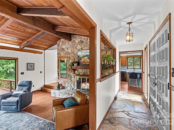 This gorgeous 3 bedroom, 2 bath home sits on a 1.13 acre lot and has a full basement. You will love the wood beam ceilings in the living room, the cozy rock fireplace, and the beautiful flooring throughout. Kitchen has tons of cabinet space, island, and breakfast bar. The separate dining area and spacious living areas are perfect for entertaining guests. Full basement with interior access and garage door has endless possibilities, perfect for all hobbies. Built-in workbenches, tables, and shelves are the perfect space for a workshop. The huge back deck overlooks a tree-lined yard for privacy and a fire pit area. Amazing location that is convenient to shopping, dining, medical centers, and major interstates.