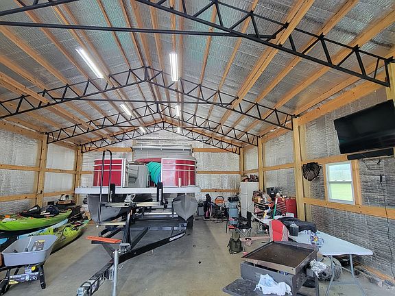 A lot of houses are listed as move in ready, this house is livable ready. By that I mean the living room furniture stays, the main bedroom furniture stays, including the bed, ALL appliances stay, the kitchen table stays. Pretty much the only thing they are taking with them is the spare bed room furniture, the baby' s room furniture and the TVs. Nice big yard with a beautiful view off the front porch or sit under the 2 big shade trees. HUGE 30'x40' shop built in 2020. The TV in the shop stays, 2 10'x10' roll up doors front and back so that you can pull your boat or trailer straight through without having to back it in there. Pull the boat/trailer out and watch Saturday football with tons of room to host a lot of folks comfortably. HVAC only 4 years old, new water heater.