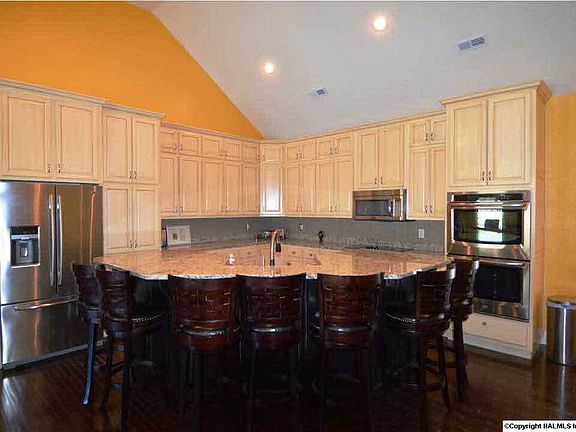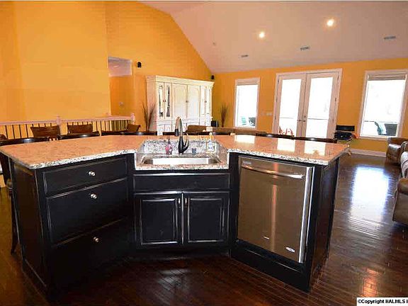 Contact Shane Vandergriff, Broker/Owner, Lake Guntersville Real Estaet, 256-302-1919. New waterfront home! Brick exterior, Hardwood and tile floors everywhere, granite countertops, stainless steel appliances, high ceilings, 3 bedrooms/4 baths, walk in closets, 2 huge covered porches, 2 fully-equipped kitchens, each with granite counter tops, 2 car garage (24x24), 2 slip boathouse with electric hoists and 14x17 sunning deck. 4+ feet water at the boathouse. Walk out basement with kitchenette and large great room. This home is perfect for entertaining! Great view and water!