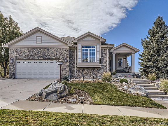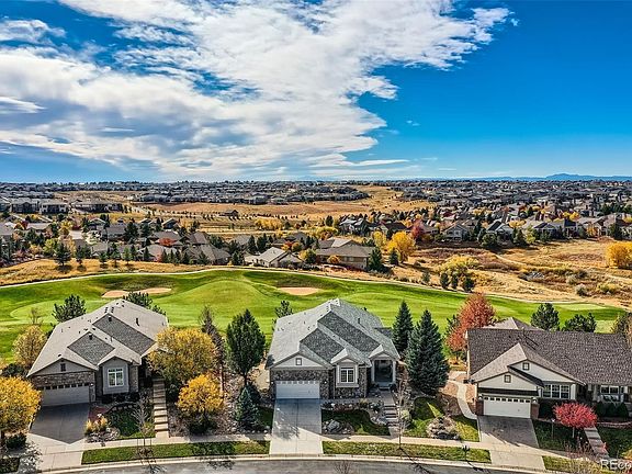 Overlooking the ever desired 18th hole of one of Colorado's most gorgeous golf courses. Home of a former NFL football great and by far THE BEST spot available on the course. This isn't just a home, this is a once in a lifetime opportunity, this is a STATEMENT that you've made it! One of the largest models in Heritage Eagle Bend, one of the best open concept layouts, in one of the most prime locations with some of the most spectacular views! Welcome to what we've dubbed the "HEB Trophy home"! If you know the community and area, than you KNOW this isn't an opportunity you would be proud to pass up. With over over 5,000 total square feet, this ranch style home with walkout basement and high vaulted ceilings GLOWS compared to the "competing" homes. Just in time for the holidays, this lifestyle is ready for you to call it yours. 2 spacious bedrooms, full office, formal dining and main level laundry are just a few notable aspects of the main floor. Incredible, large deck overlooking HEB's 18th hole and Colorado's majestic skyline, it's almost impossible to forget this breath of fresh air! Tons of natural light all day and just enough coverage to enjoy privacy when you desire. Open floorplan, FANTASTIC for entertaining! Don't overlook the beautiful walkout basement with high ceilings, a mini bar, bedroom and crafts room, tons of storage and pool table with covered patio. Three car, tandem garage, easy to manage landscape, bragging rights and the satisfaction of an ultimate win awaits, here at HEB's Trophy Home! 45+ to own this statement (you read right)!