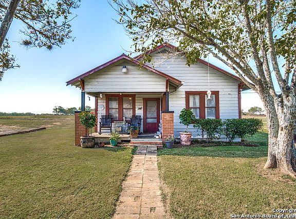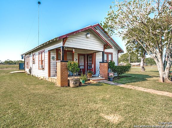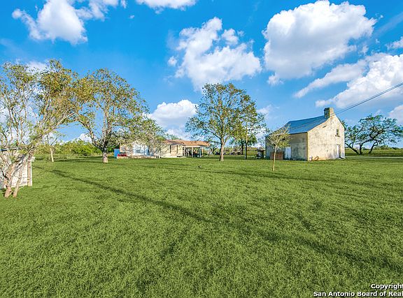 Experience serenity and tranquility on another level within this private country cottage set atop 5.46 acres in St. Hedwig. Additional insulation has been placed in the walls and attic, the kitchen counters were recently replaced, plus the bathroom offers hardwood floors and an upgraded tile shower with rainfall shower head. Totaling approx. 952 square feet, the interior showcases fabulous farmhouse details including original millwork. The eat-in kitchen is just the spot for festive parties and gatherings with custom cabinetry, shiplap walls, bead board ceiling, and a brick accent column. Accommodations include two comfortably sized bedrooms and one full bath. Coveted storage is provided by the unique closet above the attic. Metal roof, metal back fence, two septic systems, two water meters, two electric meters, water well, plus charming front and back porches. Including a mobile home on the back of the property and an additional two-story home built in 1854. Access to the two story will be provided upon request. Whether you're in search of a weekend ranch or full-time home, don't miss out on this one-of-a-kind Texas treasure.
