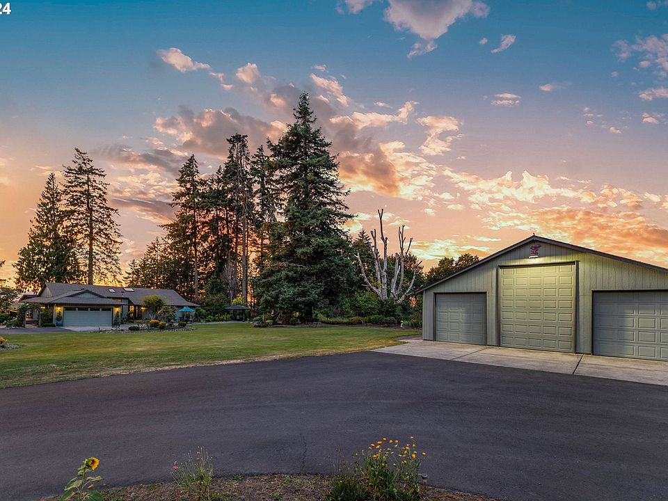 Truly, a one and only! It's a private oasis away from it all. It has arguably one of the best views in Ridgefield. On the bluff, overlooking the wildlife refuge, this mid-century style custom home offers an open concept great room adorned with floor to ceiling windows. Primary bedroom on the main floor with two additional bedrooms. The daylight basement gives a 4th bedroom opt or flex/bonus room. The newly finished "she shed" is ideal for the artist in us all. The 5 acre grounds at the end of a private road give space for goats, raised garden beds, outbuildings & more. This property is located next to the Flume Creek Conservation preserve leaving one side of the neighboring property open and green forever! The Ridgefield Wildlife preserve paints a new picture every night off the back deck. Find a place for all your hobbies and toys in the oversized shop with tall bay and lean to. Enjoy the 35 blueberry bushes and a variety of fruit trees. Fully gated, complete privacy, no HOA, minutes to the 179th freeway exit. It's Ridgefield perfection!
