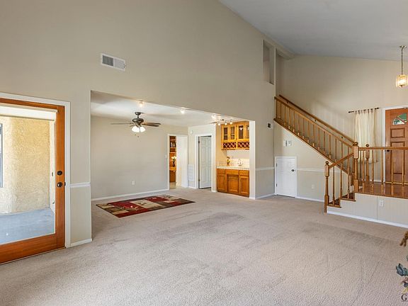 The perfect opportunity to own this great home with 3 + 2.5 baths AND a BONUS room off the garage! Fit it all in this home from your music room, office room or game room (not conditioned), to the wonderful playroom under the stairs for the kids! Large living room with tall vaulted ceilings, wet bar, formal dining area, separate kitchen with eating area, large pantry and very nice bedrooms. ALL with balconies and sliding doors. The master is very generously sized and offers a nice decor of bead board. Master bath has dual sinks and dual closets! The deck off the master is large and recently repainted and repaired. Views from the upstairs are amazing on all decks. The backyard has a great covered AND open patio with a firepit, great storage building and garden which yields strawberries! So much to offer that first time buyer or family unit. DON'T MISS your opportunity to see this great home.