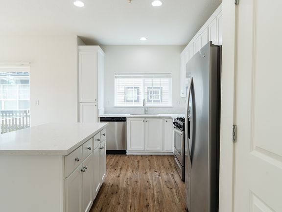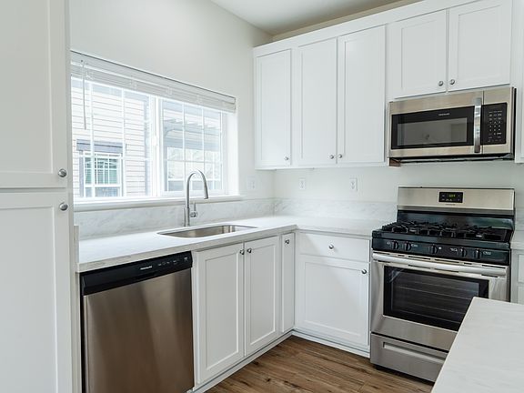 Fabulous Sherwood 3 bedroom, 2.5 bath townhome in desirable Woodhaven Crossing. High ceilings, open concept great room, and gas fireplace. Kitchen features newer LVP floors, fresh white cabinets, brand new quartz counters, and stainless appliances (new microwave, dishwasher and fridge). Vaulted primary suite with attached bath. Fabulous location with spacious deck and 2 assigned parking spaces. Rent covers water, sewer, garbage, pool and fitness room. Located next to the pool and fitness room. Assigned parking spaces 192 A & 192 B. Newer washer and dryer included. New carpet and interior paint throughout, newer heat pump/AC. Water, sewer and trash included in rent. No smoking. One pet allowed.
