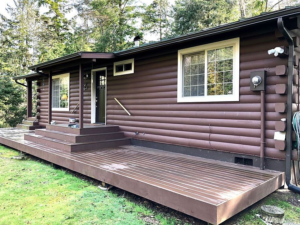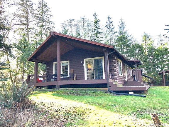 Bay front acreage with romantic log sided bungalow complete with wood stove to warm those coastal nights. 2 parcels totaling 2.37 acres with plenty of trees. Skylights in the kitchen to let in the natural light. Wrap around east and north facing decks, fire pit, storage shed, carport and gated entry.