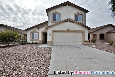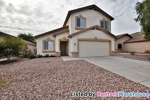 Available 11/01/2017!! Come take a look at this Beautiful 4BD/2.5BA Home in Buckeye! What I Love About This Home is the Crown Molding Throughout, High Ceilings, New Light Fixtures, Ceiling Fans and Laminate Hardwood Flooring. Walk into the Newly Update Kitchen Featuring Custom Cabinets, Subway Tile, Apron Front Sink, Pantry, Center Island and Plenty of Cabinet/Counter space for the cook in the Family. Walk Upstairs to All Bedrooms and Small Loft, Perfect for Office Space. Master Suite Features Walk-In Closet and Marble Tile. Wander Outside to the Beautiful Backyard Featuring Lush Greenery, Brick Pavers and Covered Patio. All Appliances Included with Washer & Dryer. Minutes away from Shopping, Dinning, Entertainment, Schools, Parks, Golf Course and I-10. Dogs Welcome!! Monthly Rent is $1250 + 4% Rental/Admin Tax. $1250 Deposit, $150 Admin Fee and $55 App Fee. (LISTED BY RENTERS WAREHOUSE) YOU DON'T WANT TO MISS OUT ON THIS BEAUTY!!