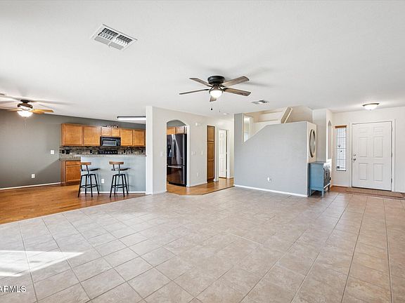 This move-in ready gem sits on a desirable PREMIUM corner lot right next to lush green field perfect for playing catch and a playground - STEPS FROM THE GOLF COURSE. Inside, you'll love the convenience of a bedroom and full bath downstairs, plus peace of mind with TWO NEWER HVAC units (2023), updated appliances and the bonus of solar for energy saving - HIGHEST summer bill was $74.10!! Step out back to a fully landscaped retreat featuring turf, a cozy sitting area and a covered patio - perfect for relaxing or entertaining. All this nestled in a quiet subdivision known for its welcoming neighbors and 18 hole GOLF COURSE designed by Greg Nash! Minutes from Verrado, dining, shopping, easy freeway access, the new Buckeye Commons and Costco.