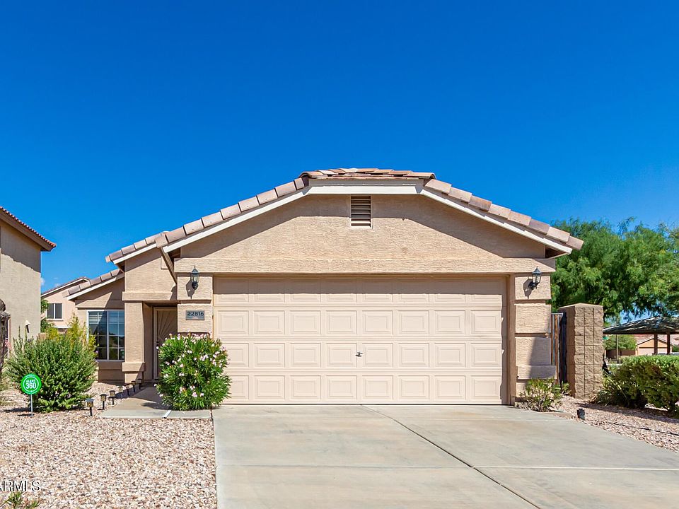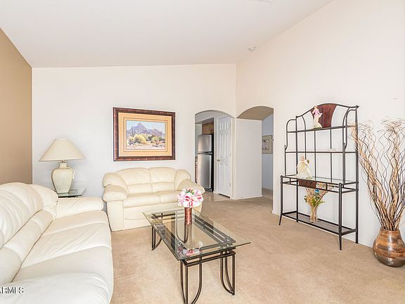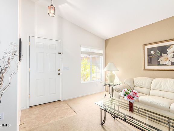 Welcome home to this lovely 3 bedroom, 2 bathroom property! Come inside the comfortable living room to discover the striking vaulted ceilings, carpet, and designer palette. The spacious great room enjoys bountiful natural light, ceramic tile floor, and it's great for entertaining. Immaculate kitchen with delightful light fixtures, plenty of wood cabinets, pantry, and an island. Grand primary bedroom with soft carpet and two large closets. The meticulous backyard provides a relaxing covered patio, paver pathways, synthetic turf, and mature desert landscape. Don't this amazing opportunity space! Call now!
