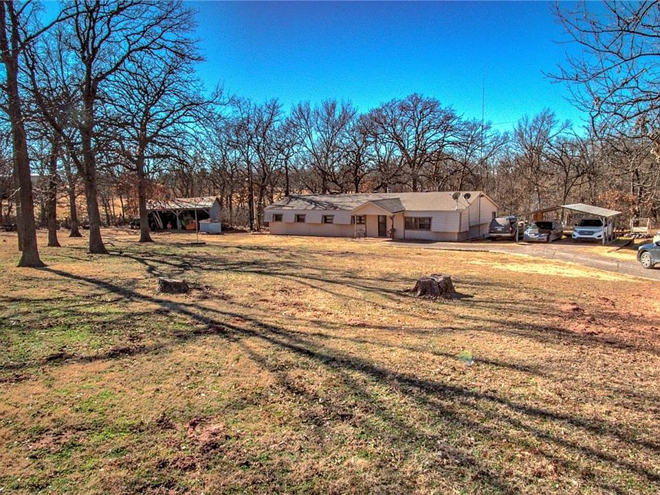 Four bedroom home on 8 acres, new floors, newer roof, carport, storm shelter, workshop, plus so much more. This home is in a quiet, out of the way neighborhood with so much to offer the buyer who wants plenty of space. The large kitchen features tons of cabinet space and the master bedroom suite includes so much storage. Book your showing today!