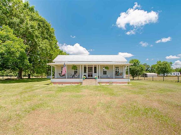 Enjoy a serene environment in this darling Country Home, situated on 5 grassy acres! In the Phillipsville community of Bay Minette, the home sits near the Alabama-Florida line, making travel within either state super convenient! With gorgeous mature Oak Trees and Fencing, the large property also includes a sizable Storage Building and a Deep Covered Front Porch ideal for taking in the views. A Metal Roof adds to the attraction of the home, and there is a variety of desirable interior features to include Exposed Beams in the Foyer, Bead-board walls throughout, a charming Claw Foot Tub in the Guest Bathroom, and Fireplaces in BOTH Bedrooms! Older built, the home possesses so much character, especially in the well-preserved Hardwood Flooring. You will love all the potential to be found in the acreage; whether you prefer large-scale gardening or small-scale livestock-raising, this property has you covered! Come check it out today!