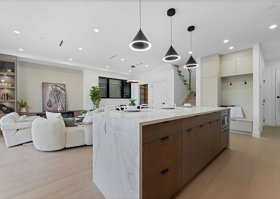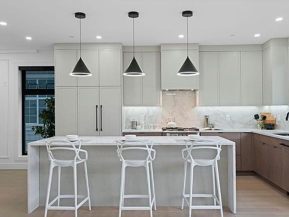 RARE 2-LEVEL BACK UNIT ! Stunning 3 beds, 3 baths south-facing home on iconic E. 8th Ave, steps from Commercial Dr. Designed by Architrix with interiors by KD Design Studio, this spacious unit features engineered oak floors, custom fluted millwork, built-in closets, and a cozy fireplace. Gourmet kitchen with Fisher & Paykel appliances, quartz countertops, stone accents, waterfall island. Enjoy large black sliding doors, EV-ready storage shed, A/C heat pump, oversized tiled balcony, Paver stone patio, pro landscaping, and walk-in pantry/den. Near SkyTrain, bus routes, Trout Lake & shops. Loads of Natural Light. Includes 1 parking, bike room, storage