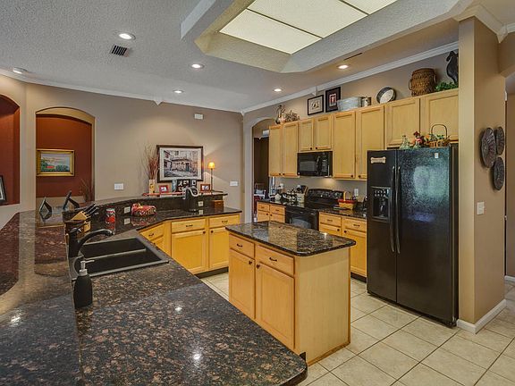 Florida living at its best in this immaculate one owner pool home. A warm & welcoming spacious open floor plan with formal living & dining rooms. Large kitchen that opens to equally large family room with expansive views of pool to water to 18th fairway. Built-in shelving surround wood burning fireplace, crown molding & art niche. Kitchen boasts granite counters, tons of cabinetry & counter space with separate breakfast area. Light & bright master bedroom with treyed ceiling. Remodeled master bath with separate shower, tub & spacious walk-in closets. Large bonus, game or 5th bedroom upstairs with full bath. Great location within walking or biking distance to elementary school & community pools. Transferrable termite bond in place. CDD bond expires in 2016.