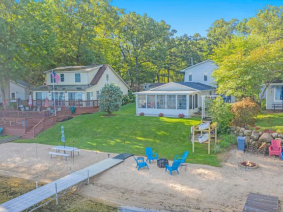 Welcome to your own piece of paradise! This home offers 50 ft of water frontage on Middle Lake, an all Sports Lake with a newly added beach in summer of 2020! Easy access to Twin Lake, West Lake and North Lake. With almost 1800 sq ft of living space, It's the perfect home or cottage for relaxation or for fun in the sun!! Main floor living area hosts new vinyl plank flooring and fresh paint throughout with access to the 3 season room, overlooking the beautiful lake. Updated kitchen boasts: new countertops and kitchen appliances. Main floor offers a master bedroom and laundry. Upstairs hosts 2 more large bedrooms with new carpet, a fully updated bathroom, and additional living room with another beautiful lake view. New well and hot water heater in 2020, New roof in December 2017, and the Furnace is only 4 years old. The oversized 2 stall garage is heated and has plenty of storage! This beautiful home is ready for its new owner to move right in and enjoy the end of summer at their new l