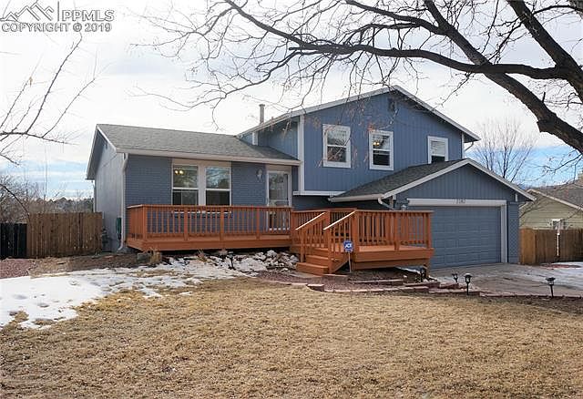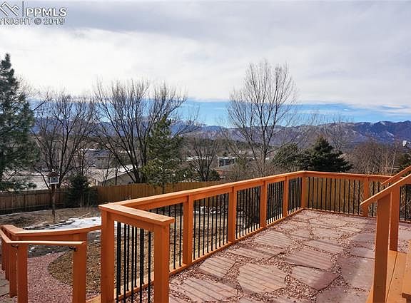 Beautifully updated N/E tri-level with breathtaking mountain views of Pikes Peak. Enjoy open floor plan, spacious rooms and cozy wood-burning fireplace. IKEA kitchen with soft-close drawers, glass tile back splash and stainless steel appliances. All three bedrooms upstairs and master offers dual closets. Huge 12,327 sq. ft. fully-fenced backyard with storage shed, flat-rock patio and second wood deck that is already wired for a hot tub. RV parking. Walking distance to Dublin Park. New carpet/New paint. Welcome home!