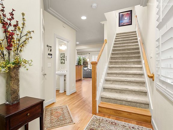 Lovely unique Renaissance built townhouse with recently refinished floors, newer carpet. Beautiful maple cabinets, many with pull-out shelving, granite counters, SS appliances, refrigerator included, pantry. Surround sound Bose speakers included. Quiet private deck with stairs to small backyard- great for pets. Loads of storage in the garage and a walk-in crawl space. Fabulous location close to shopping and dining, I-205. Top quality West Linn schools.