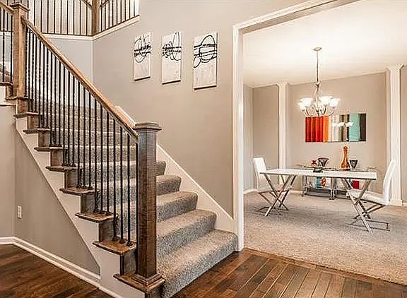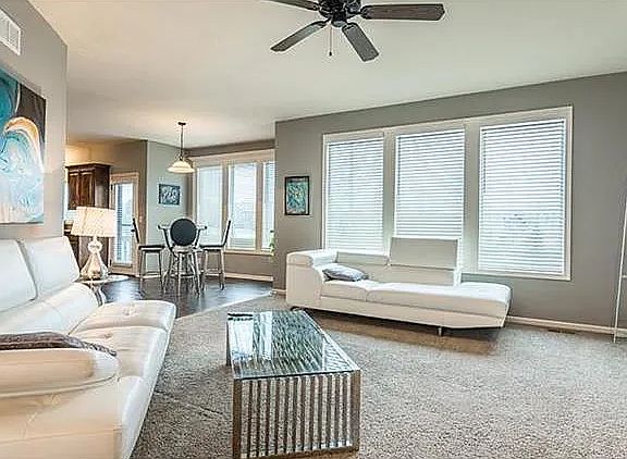 Step into a warm welcome with gorgeous hardwood floors that flow seamlessly through the kitchen and dining areas. The spacious, updated kitchen boasts a gas range with vent hood, brand-new refrigerator, center island, granite countertops, and elegant wood cabinetry. The finished basement adds even more living space perfect for entertaining plus a full bathroom and a generous storage area. Upstairs, the expansive master suite features a tray ceiling and a luxurious en-suite bathroom complete with a jetted tub, double vanity, walk-in shower, and convenient access to the laundry room on the same level. Enjoy the outdoors in a large, fully fenced backyard ideal for pets, children, or gatherings with friends and family. Located less than a mile from elementary, middle, and high schools, this home is perfectly suited for families. Quiet, safe and family-friendly neighborhood. Washer, dryer, and microwave are included for convenience only and will not be serviced or replaced by the landlord. Note: Interior photos displayed here are from previous staging. Renter is responsible for all utilities, maintaining the yard and snow removal. No smoking allowed. Long term lease is required. Last month's rent due at signing.