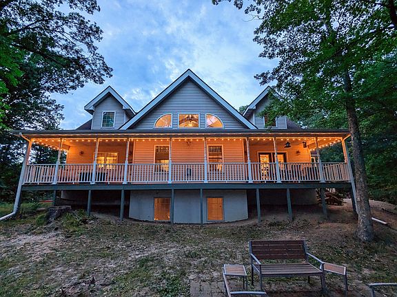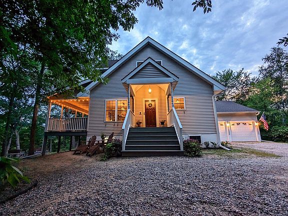 Escape to this incredible hilltop retreat nestled among the trees! With stunning views of water and woods from every window, you’ll feel like you’re at a lodge up north, while being minutes from Starbucks. This home features an expansive covered porch with serene water views, situated on 5+ acres of forested land. A large, window filled master bedroom and laundry are on the main floor, along with vaulted great room and kitchen. 2 spacious bedrooms upstairs highlight the massive vaulted ceiling beams and light filled great room. The basement has a large family room with built-in cabinets and window seats, along with a workout room featuring a 10ft putting green. The basement has a possibility for a 4th bedroom and large multi-use room, along with a bathroom that is roughed in, ready to be finished. The HVAC was recently replaced, ensuring comfort year-round in your woodland retreat! If you are looking for an alternative to cookie cutter production homes, welcome home!