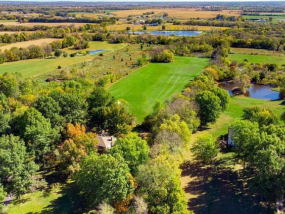 Best of both worlds! Country Living and City Access. On all paved roads, just 15 minutes south of Overland Park is this one owner, meticulously maintained 12 acre property. Featuring a 2 Story Home, Extra 2 car garage/Barn with horse stalls and stocked pond. The home has an updated kitchen, master suite with spacious balcony and fire place, finished basement and an all seasons sunroom with fireplace. Come check out a slice of country heaven. All information including but not limited to square footage, acreage and taxes are approximate. Buyer and agent should verify. Seller needs end of December closing date