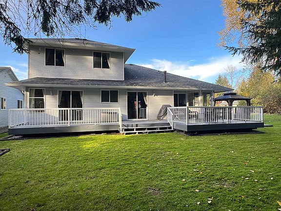 Extremely well cared for home with a thoughtfully designed and unique floor plan. The spacious master bedroom on the main floor offers convenience and privacy, while two additional bedrooms and a full bath upstairs provide ideal separation for family or guests. The main floor features both a cozy living room and a bright family room, perfect for entertaining or relaxing. Set on a quiet cul-de-sac backing onto a peaceful creek, this home invites outdoor living with a large deck, gazebo, and hot tub. The modern kitchen shines with quartz countertops, an undermount sink, and updated finishes. Additional highlights include a built-in wall unit in the flex room, new bay windows in the living room, tankless hot water system, gutter guards, refurbished rubber driveway, and extra attic insulation.