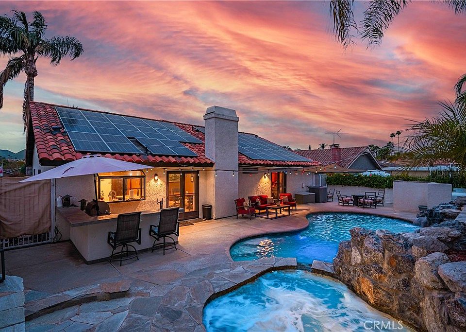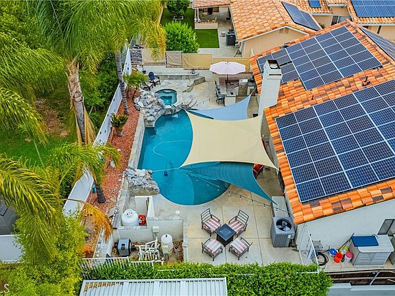 Welcome to this spacious updated 4-bedroom, 2-bathroom home offering 2,025 sq. ft. of comfort. This property features a 3-car garage, a sparkling pool and spa, and a cozy fireplace, perfect for entertaining or relaxing year-round. Enjoy peace of mind from the solar panels, we never have a bill. We went from over $900 per month from SCE to $358 solar payment. Enough power to run everything and charge 2 electric cars. Every roof plain under the solar system was completely redone with new tar paper, composition tile, and the clay tile carefully reinstalled—ensuring both durability and energy efficiency. Solar is only 2 years old. Granite countertops and newer carpet. This home combines practical upgrades with the Canyon Lake Resort Life Living—ideal for families or anyone looking to enjoy the best of indoor-outdoor California living. Other amenities, whole house quiet cool fan system with 5 vents, HVAC vent to the garage, outdoor kitchen area in backyard, shade sails and lights, ring cameras can stay with the home.