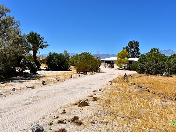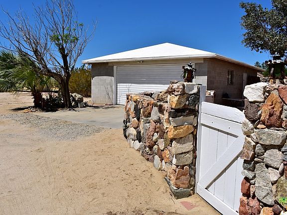 Well appointed five acre property surrounded by mountain views and mature native desert landscape. This "desert cabin" was originally constructed in 1960, being completed in three stages. This year-round property is fully equipped with water, electricity, septic system and new air conditioner. It is accessible through paved streets leading onto deep driveway for added privacy. One bedroom, one bath home features quaint kitchen and large family room with knotty-pine wood paneling. Separate den/office area with several big picture windows throughout home allowing for natural light and picturesque vistas all day. Enjoy the various patio areas while admiring the desert's peacefulness. There is also a detached over-sized two car garage with laundry area, separate storage shed and working area. Home and grounds have been well maintained and cared for over the decades with true pride of ownership. Schedule private showing today.