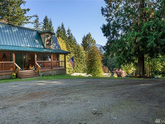 Custom built log home. This home features new metal roof & covered front porch that is made to enjoy the peace and tranquility of country living yet just minutes from I-5. Main level has spacious living room with French doors to deck. Kitchen has new solid surface countertops, new sink, oven and cooktop. Large eating area with wood-stove and hardwood floors throughout. Upstairs has 3 bedrooms plus full bath and reading nook. Woodstove in basement can heat whole house. 24X30 metal shop with power