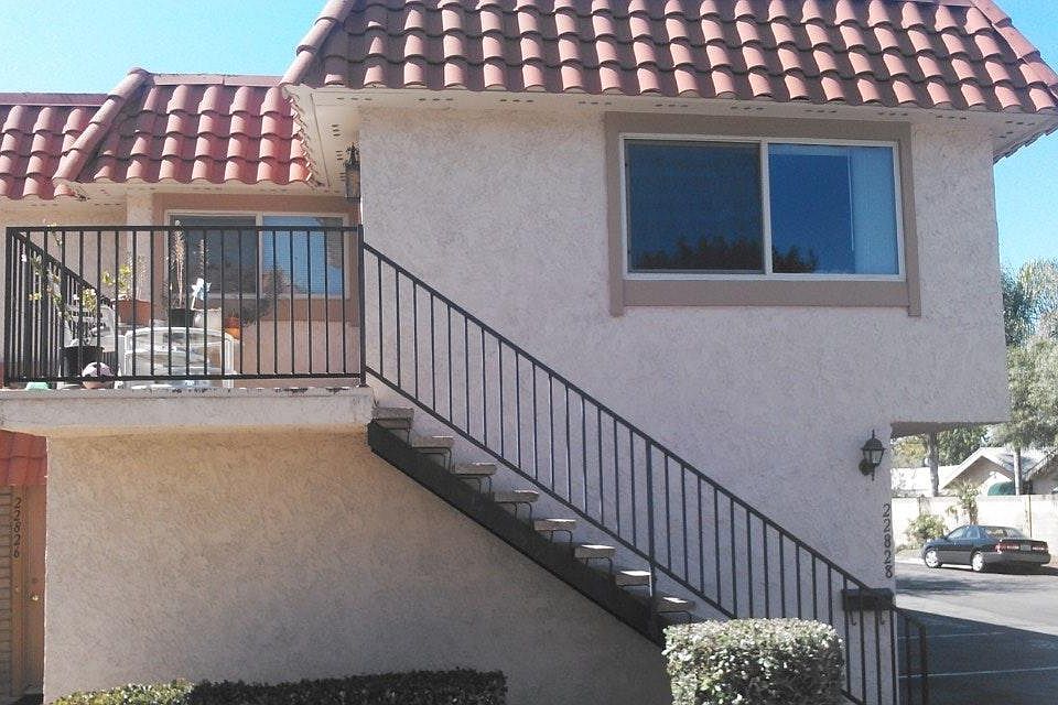Huge 2/1 condo, over 1,000 square feet. Upstairs unit above garages, no one above or below. Single car garage. Large living space with 18 inch tile flooring throughout. Carpeted bedrooms. Upgraded windows, nice white shutters and baseboards. Lots of natural light. Gas range and dishwasher in kitchen. Bathroom has refinished tub and new vanity. Central heating/ac. Large patio at front door, back door leads to a fenced patio/small yard downstairs. This is a great place inside. Full size washer/dryer hook-ups inside. Community Pool and green belts. Unit is in rear of complex, very quiet. Available Feb. 1st. Please call if you'd like more info or to schedule a viewing. Please do not disturb tenant. Credit Report required. 949-369-7665 please leave a message if we miss your call $1875.00 includes water and trash. Huge 2/1 condo, over 1,000 square feet. Upstairs unit above garages, no one above or below. Single car garage. Large living space with 18 inch tile flooring throughout. Carpeted bedrooms. Upgraded windows, new white shutters. Lots of natural light. Gas range and dishwasher in kitchen. Bathroom has refinished tub and new vanity. Central heating/ac. Large patio at front door, back door leads to a fenced patio/small yard downstairs. Full size washer/dryer hook-ups inside. Condo is in rear of complex, very quiet neighborhood with green belts and Community Pool . Available Jan. 15th. Please call if you'd like more information. Please do not disturb tenant. $1875.00/ month security deposit $900.00. One year lease. Credit Report required and 2 months paystubs 949-369-7665 please leave a message if we miss your call
