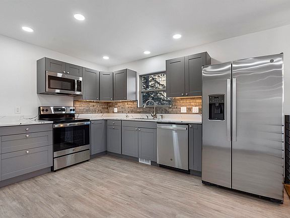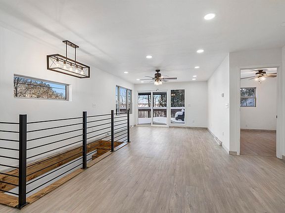 Beautifully updated home with a fabulous view of the river. This home sits high on the bluff with a great view of the main channel. Open floor plan featuring 2 bedrooms and bath on main level. 1 bedroom and bath in lower level. 2 family rooms. Beautiful iron railing around the stairs leading to the lower level. Quartz counters. All new plumbing, flooring, sheetrock, paint, doors, furnace, electric, central air and septic. 2 stall attached garage. Good sized lot providing extra parking.