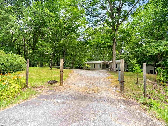 Discover peaceful, private living on an impressive 6.1 unrestricted acres in Landrum, SC. This gated, wooded property feels like your own secluded retreat off Scenic Highway 11. The updated home features a covered front porch, expansive screened-in 28x8 rear porch, and a recently enclosed sunroom/laundry room that overlooks the serene forested backdrop. Inside, enjoy LVP flooring, shiplap accent walls, a fully updated primary bath with walk-in shower, added cabinetry with prep sink, and a barn door on the primary closet. All appliances convey, including refrigerator, washer, and dryer. Outdoor living is top-tier with a 16x16 outbuilding (plus 12x11 lean-to), firepit, and space to explore. Plumbing updated to PEX (2–3 yrs ago per seller), fire hydrant nearby for lower insurance, city water plus old well on site. Conveniently located near Table Rock, Chestnut Ridge, Blue Wall Preserve, and more—this is your perfect mountain escape between Landrum and Travelers Rest. Furnishings are negotiable. Mobile home foundation qualifies for all loan types.