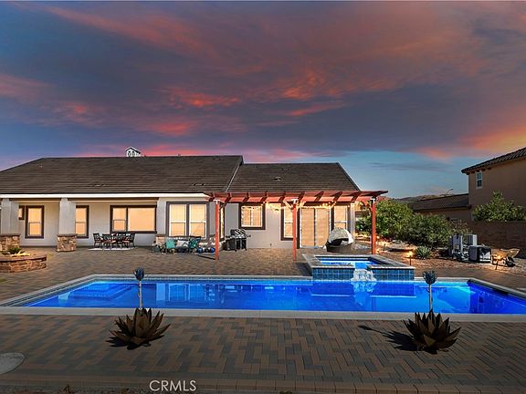 Stunning, sought-after, single-story, Crystal Ridge home! Almost 3100 SF of luxury living. You've realized your dream when you open the stately entry door to the elegant foyer. Dramatic architecture compliments this beautiful single story. The spacious Great Room is nothing short of grand w/ large picture windows & PANORMAIC views that go on forever! The backyard boasts a large pool, with plenty of space for back-yard barbeques. Impressive, raised hearth, corner fireplace &media niche w/state-of-the art wiring, including pre-wire for surround sound & security system. Sunny breakfast nook opens to the kitchen w/French door leading to the large covered, patio. The kitchen is an epicurean delight w/huge center island/breakfast bar, including a vegetable sink. Beautiful wood-carved corbels, and enhanced cabinetry w/crowning and recessed lighting. The walk-in pantry, upgraded double oven w/convection,5 burners continuous-grate range, and hidden-control multi-cycle dishwasher are just a few of the upscale kitchen features. And that's not all! Recessed cabinetry nook and large, separate formal dining room, ample for a large gathering. The generous master suite has an adjoining bath with a jetted soaking tub, a compartmentalized shower, and an enormous master closet (the size of a secondary bedroom!). The indoor laundry room comes complete with a sink and mud room! AND THAT'S NOT ALL! PAID SOLAR to keep those energy costs down! Don't miss this one!