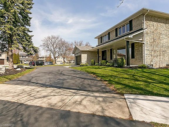 Welcome Home! Beautifully updated, meticulously maintained family home is located on a quiet, mature court. Arguably, the nicest lot in the neighbourhood w a circular drive, large mature pine tree & large front porch to sit & enjoy your morning coffee. This 4 bed, 3 bath home has been extensively renovated over the years. Main floor boasts: Sep. Living room w picture window is open to sep. dining, updated kitchen w granite countertops, breakfast bar, chrome accents, stainless appliances, sep. eat-in area w direct access to backyard, Family rm. w gas F/P, brushed white oak HWD flrs ('18), pot-lights & access to backyard, lrg mud rm., updated powder rm. w granite counter-top on vanity. 2nd flr. offers HWD staircase, original strip HWD flrs in bedrooms, Master Bed w rare 2pc. ensuite & 5pc. main bath. Finished basement design to be an English Pub has a wet bar, pool table & lrg 2nd family rm., an office, lrg laundry/utility rm. The exterior of the home is as impeccably maintained as the interior. Windows 2018, Shingled Roof '18, Fam./Kit sliding doors '17, Custom Front Door '19, Exterior Lights '18/'19. This home has stunning curb appeal & the perfect place to raise a family. Minutes to amenities, schools, major HWY's, easy location to commute from. This one is not to be missed!