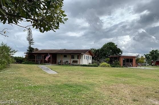 Unique Find on the intracoastal waterway. This Florida home has a basement, an exceptional view of the Caloosahatchee River and boat docks are permittable. The hobbyist will enjoy the single car garage with workshop for a multitude of uses. The home upstairs has 2 bedroom w/2 baths, a formal living / dining area, family room with fireplace, separate laundry room and large eat in kitchen with breakfast bar. Two porches allow excellent views of the riverfront sunsets. The Army Corp. of Engineers allows homeowner to permit dockage. The added bonus is the property consists of a separate buildable lot if you ever wanted to sell the adjoining lot. A must see to truly appreciate.
