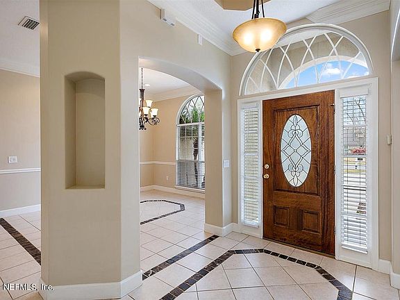 Beautiful golf course home is now available! This 5 bedroom home features chefs kitchen with cooking island and kitchen desk area. Large family room is full of natural light and offers a fireplace surrounded by built-ins. Owners suite with walk-in shower and garden soaking tub. Screened lanai overlooks an oversized fenced yard with plenty of room for a pool.