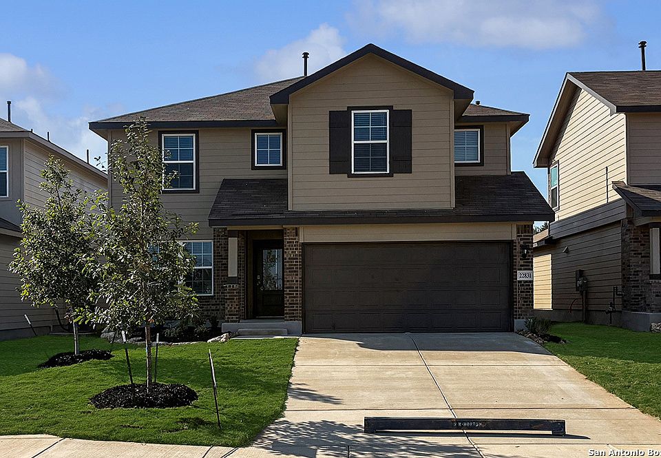Introducing The Lombardi, a two-story home featured in our Langdon community in San Antonio, TX. This floor plan offers 3 classic front exteriors, a 2-car garage, and a full yard landscaping and irrigation package ensuring that your home looks its best every single day. Inside this 5 bedroom, 2.5 bathroom home, you'll find 2539 square feet of open-concept living. A deep-set, covered porch (per plan) opens to a foyer, formal dining room, and powder room. A butler entry connects the dining room and spacious kitchen lined with abundant cabinetry and quartz-top counterspace. Classic white subway tile backsplash and stainless steel appliances are a perfect accent, and a kitchen island with a deep single basin kitchen sink faces the living room. The private main bedroom suite is located off the living room and features a luxurious garden bath tub, a separate walk-in shower with tile surround, double vanity sinks, ceramic tile flooring, a separate door for the toilet and a large walk-in closet. Head up the stairs and tour the second floor of your brand new home! A versatile loft area greets you at the top of the stairs, complete with quality carpet and tons of natural light. Your four secondary bedrooms are located off the loft and include carpet flooring and spacious walk-in closets. Additional features include 9-foot ceilings, 2-inch faux wood blinds throughout the home, luxury vinyl plank flooring in the entryway, living room, kitchen, and dining room, ceramic tile at all bathrooms and utility room, pre-plumb for water softener loop, and more! You'll enjoy added security in your new home with our Home is Connected features. Using one central hub that talks to all the devices in your home, you can control the lights, thermostat and locks, all from your cellular device.