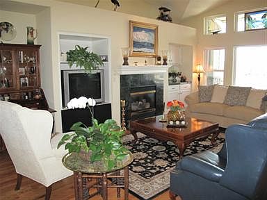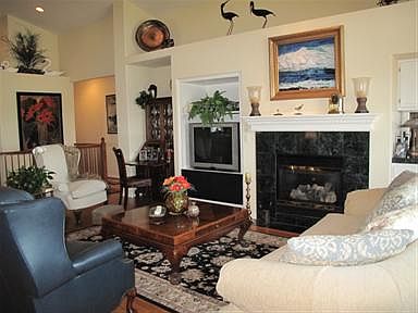Fabulous ranch style home with beautiful elevated views of the golf course and mountains. This incredibly light and bright Sandpines model has gorgeous hardwood floors throughout the main level, custom window treatments, vaulted ceilings and custom built-ins. Beautiful kitchen with upgraded cabinets, slab granite counters, stainless steel appliances, large center island with breakfast and breakfast nook overlook the golf course and unravelling views. Spacious main floor master suite with private 5-piece master bath and a custom dressing table. An additional main floor guest suite with private full bathroom. Spectacular finished walk-out basement with large family room & game room, wet bar with sink and tons of counter space and cabinets, guest bedroom and a private bathroom. Terrific outdoor living starting with the inviting covered front porch! Covered Trex deck off the main level where you can spend endless hours watching the golf course activities, watching the sunset and viewing the wildlife and birds in the nearby trees and fields. Covered back porch off of the walkout basement, custom gazebo, beautiful gardens and a water feature. This model also features a huge, formal living room with a gas fireplace, formal dining room, a handsome study with French doors, main floor powder room, main floor laundry and a tandem 3-car attached garage with a custom third garage door for easy golf cart access.