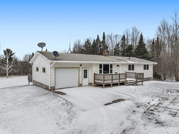 Explore an incredible opportunity with this affordably priced country home that offers exceptional value. Situated on 20 acres, this well-maintained residence comes with two spacious outbuilding. Perfect for outdoor enthusiasts or those seeking a quick serene environment, the property has witnessed abundant wildlife. Conveniently located near the pristine Huron River, celebrated for its trout fishing, and just a 5-mile drive to a secluded sugar sand Lake Superior beach, it also provides easy access to public land. Both the 26x40 barn and the 20x44 outbuilding are equipped with power. The property has a second drilled well by the outbuilding. The owner enjoys modern conveniences, including full cell phone service with a Verizon booster (likely non-transferable) and fiber optic internet. The house is wired for a backup generator. The yard features several apple trees, and there's an older orchard of about 20 trees in the woods off the driveway that could be revitalized. Recent upgrades include replacement windows and flooring within the last 3 years, complemented by a well done bathroom remodel. For those who appreciate burning wood, the house has a backup hot water wood heating system, providing an additional layer of security. The sale is contingent on land division approval and offers 3/4 mile of road frontage provided for a lot of flexibility with property use. The laundry room has the potential to be converted into a third bedroom or laundry. The basement is spacious, tall, and dry, contributing to the overall appeal of this unique country home. An additional 20 acres of hardwoods is available for $50,000.