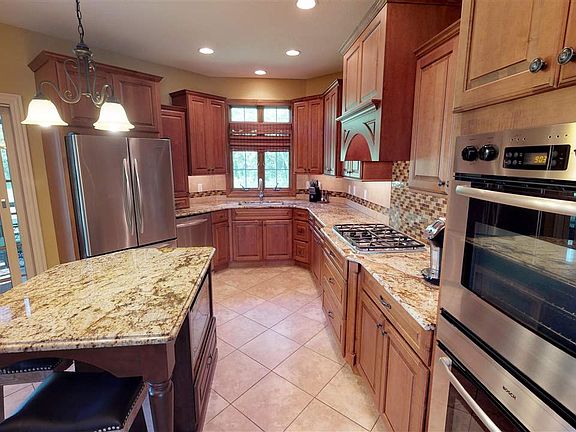 Gorgeous home on a 1.2 acre lot bordered by woods. Central School District too. Screened porch and patio overlook professionally landscaped yard.Tray ceiling in dining and master bedroom. Hardwood floors in dining and living room. Wood burning fireplace with wine chiller. Medallion cabinetry, granite counters and an island w/seating in the eat-in kitchen. Luxurious master has walk-in tiled shower, double sinks with vanity, garden tub and walk-in closet. Please view 3D tour.