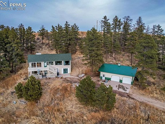 Discover the serenity of this private sanctuary nestled on 40 treed acres. The home boasts breathtaking views of Pikes Peak from the front deck, inviting floods of natural light through numerous windows. The open concept floor plan is ideal for hosting holiday gatherings. For remote workers, a beautiful library/bedroom offers a perfect blend of natural light and Pikes Peak views. The walkout basement, flooded with natural light, is stubbed for a potential mother-in-law suite. With a detached garage suitable for woodworking or animals, and the option to subdivide into four 10-acre lots, this property in Elbert County offers endless possibilities. Close to Kiowa and Agate school districts, it provides families with diverse educational options. Make this retreat your home and seize the opportunity to create a life of tranquility and flexibility.