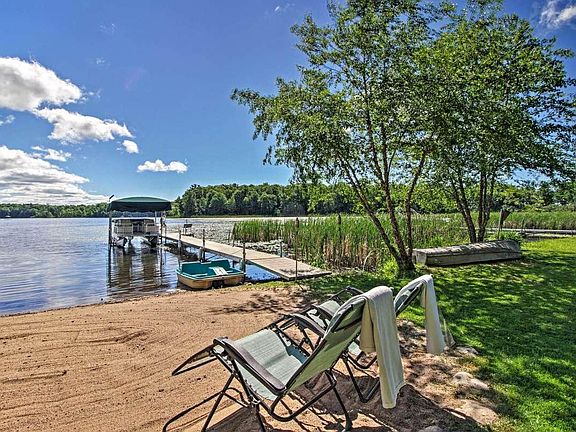 Business Opportunity or your family cabin or both. Turnkey sale includes an updated 1 BR/1 BA cabin with additional bunk room/garage, and pump/fish cleaning house. (pump/fish cleaning shed needs TLC) Sale also includes all furnishings, dock, motorized lift, and 2004 Premier Pontoon with a Yamaha 50HP Four Stroke motor. Cabin has a newer roof. Furnace and central air. High demand beautiful lake shore on the Crooked Lake Chain gives you access to 3 other joining lakes. (Sugar Bay, Hanks, and Portage) "Crooked Lake Camp" has been used by the seller's family as well as short-term-rentals via AirBnb and VRBO. (last year it paid for itself and some updates) Currently has 4 reservations for this summer. (see AirDNA Rentalizer page in supplements) Watch the Virtual Tour. (it's a video)