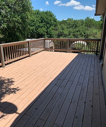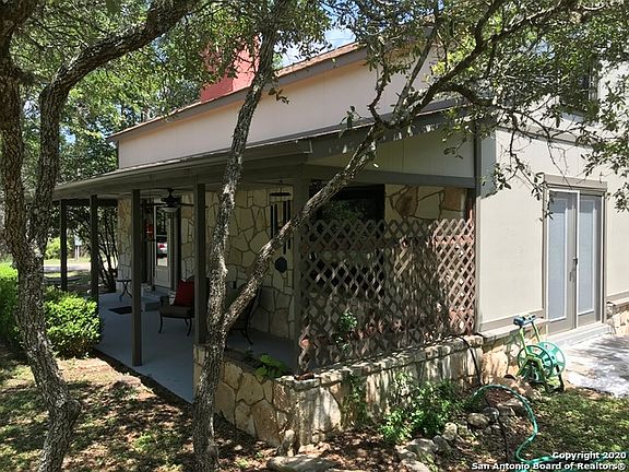 Lovely open floor plan Hill Country home at the end of a private drive...no neighbors in sight! This home is much larger than the tax rolls say, our appraisal says 2089 sq ft!! Extremely well cared for with new heat pump, new roof, granite counters, fresh paint, septic pumped and lid replaced, private well, new Sweet Water filtration system, warm fireplace, security system, updated electrical boxes and new ceiling fans in living/dining area, front porch and back patio. All bedrooms are en suite...Master on the main level and other bedrooms upstairs. Enjoy spectacular Hill Country views from the huge second story balcony. Back yard is very private, property backs up to a cattle ranch. Evenings dining on the beautiful covered deck or around the fire pit with family will feel like you are on vacation in your own backyard. Canyon Lake is only 25 minutes away and there is a 50amp plug for your motor home in addition to plenty of parking. Lots of room to add a pool! Storage abounds, there are 3 sheds and a workshop on the property. A large circular driveway will take you out to the street where HEB, restaurants, Home Depot and Walmart are only ten minutes away.
