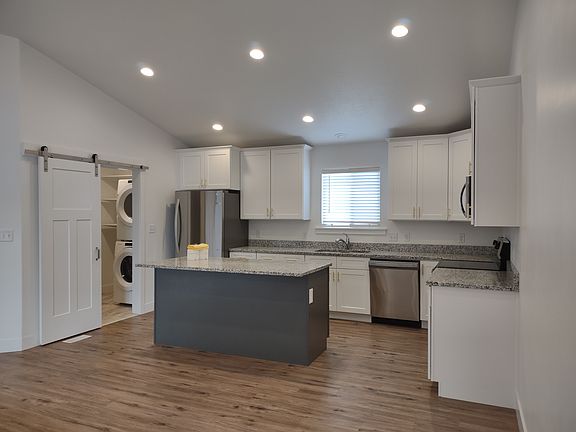 Gorgeous 6 bd/3 bth single family home, Available July 2023! Enjoy a large, bright open kitchen, dining and family room! Kitchen is complete with white shaker cabinets with soft close feature, brushed brass hardware, granite counter tops, stainless steel appliances and LVP floors! A split bedroom plan features an Owners suite complete with 5 piece bath at the back of the home and two additional bedrooms and a full bathroom towards the front of the home. A laundry room with a front load washer and dryer, a pantry with sliding barn doors and a huge covered deck accessed through the 4 panel sliding doors off the family room, complete the upstairs. Downstairs showcases a large UNFINISHED Family room, perfect for storage, three finished bedrooms a full bathroom and hall closets. Tankless water heater and water softener. 2 Car garage with remotes and keypad. Fully fenced backyard. Schools: Cedar Valley High School, Frontier Middle, Eagle Valley Elem